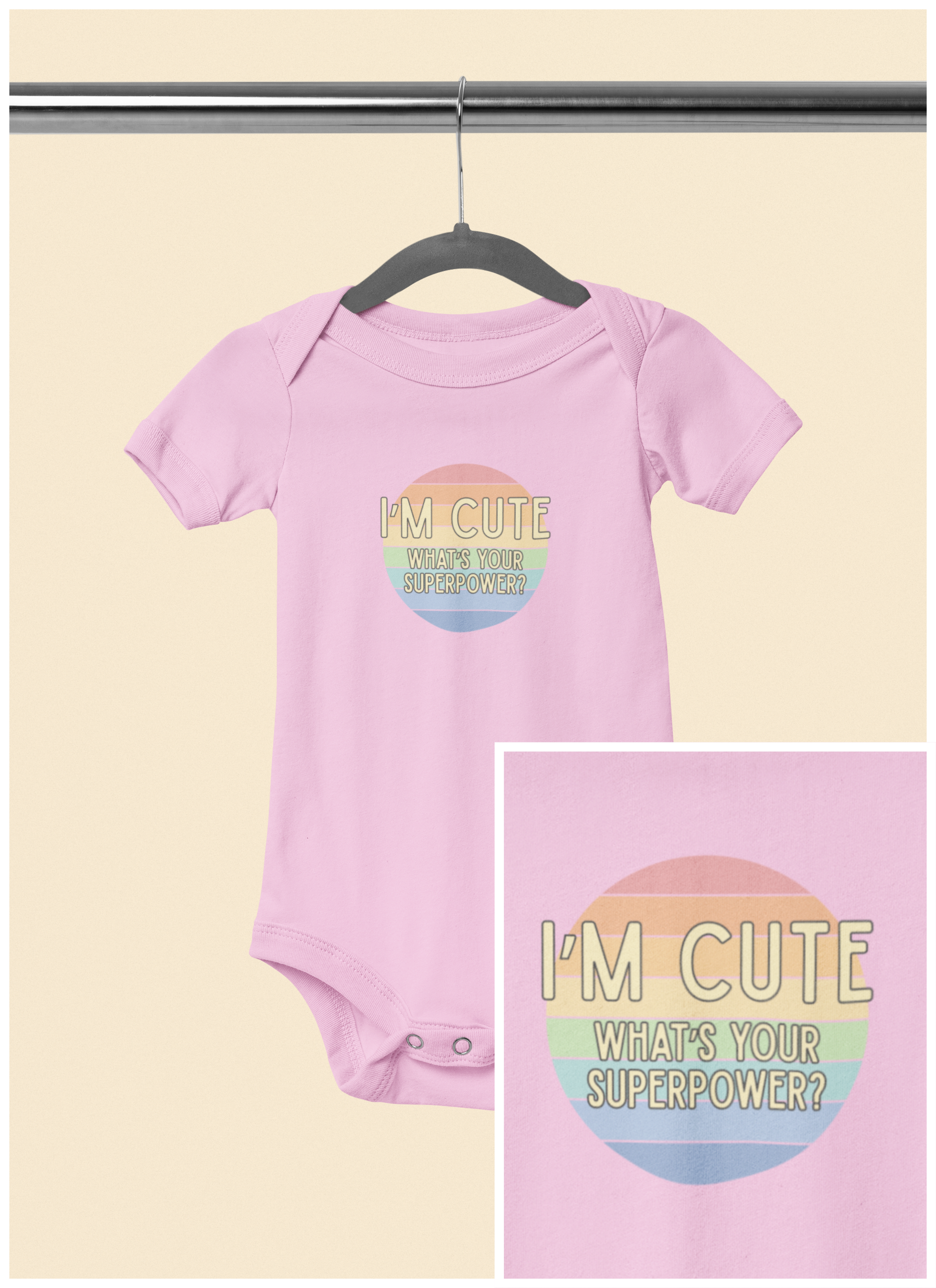I'm Cute, What's Your Superpower? - Baby Bodysuit - on San Diego Sunset